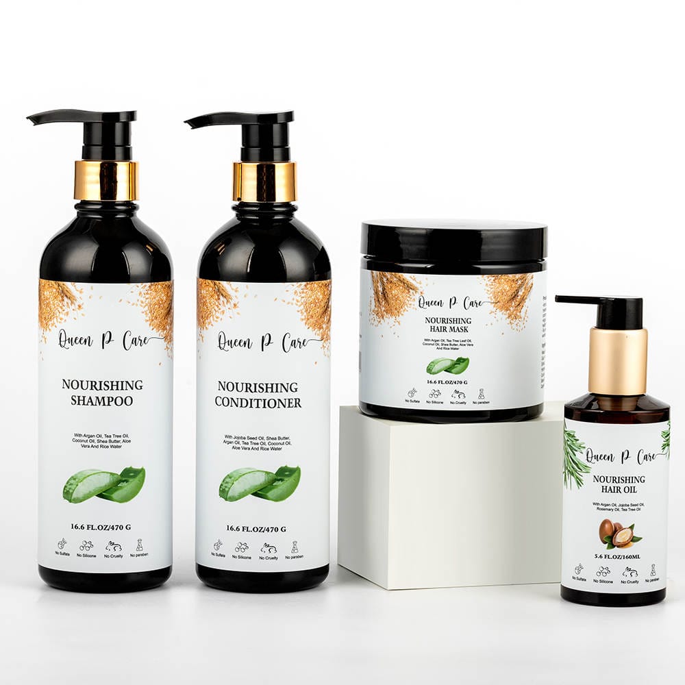 Pamper your Hair with our luxurious Nourishing Hair Set. This set includes a nourishing shampoo, conditioner, and hair mask, all formulated with natural ingredients to revitalize and replenish your hair. The shampoo gently cleanses the scalp and hair, while the conditioner deeply moisturizes and detangles. Finish with the nourishing hair mask to provide intense hydration and repair to your strands, leaving your hair feeling soft, smooth, and revitalized. Perfect for anyone looking to restore their hair's natural shine and luster, our Nourishing Hair Set will leave you with healthy, beautiful hair.