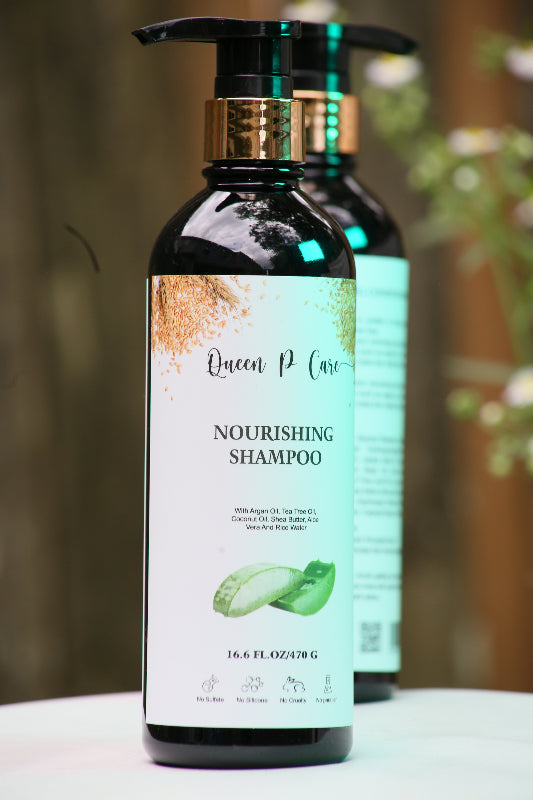 Experience the ultimate nourishment for your hair with our Nourishing Shampoo, infused with a powerful blend of Argan oil, tea tree oil, coconut oil, shea butter, Aloe vera and rice water. This unique formula deeply hydrates and adds shine to dull, dry hair, leaving it feeling soft and manageable. The natural and skin-friendly ingredients help to repair and strengthen damaged hair, while promoting a healthy scalp. Say goodbye to frizz and hello to luscious, vibrant locks with our Nourishing Shampoo. Treat your hair to the luxurious care it deserves, and indulge in the nourishing benefits of this revitalizing shampoo.